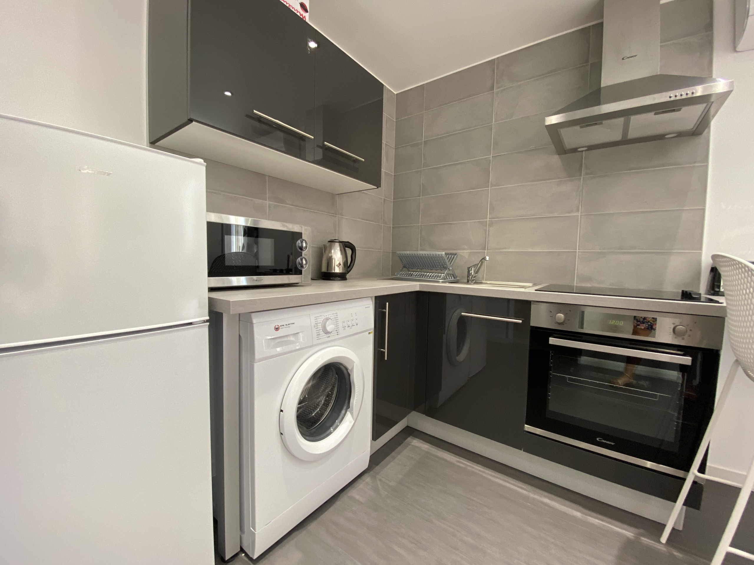 La cocina independiente, de vitrocerámica, está equipada con nevera, microondas, horno, congelador, lavadora, vajilla/cubertería, utensilios/cocina, cafetera y tostadora.